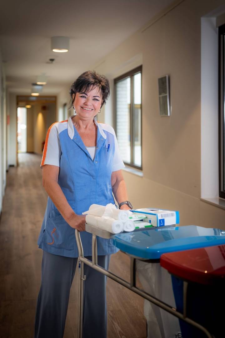 Hoe druk het ook is, Miranda probeert bij elke bewoner even echt contact te maken. Een kort praatje, een vraag, een glimlach. Soms is er ook een moeilijk moment, bijvoorbeeld als iemand achteruitgaat. “Dan neem ik even extra de tijd. Dat hoort ook bij dit werk.”